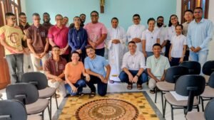 Após a Celebração Eucarística, tivemos o Painel das Presenças Proféticas com os seguintes temas e palestrantes: “Casa Betânia: Centro de Acolhida para mulheres vítimas de violência doméstica” – Ir. Raquel Pena Pinto (Regional Porto Alegre); “Vida Religiosa Consagrada e a missão junto aos povos indígenas de Roraima” – Ir. Rita Lopes (Regional Manaus); “Ecologia Integral: Muçum, RS – a força das águas e a solidariedade” – Ir. Maria Lourdes Urban.